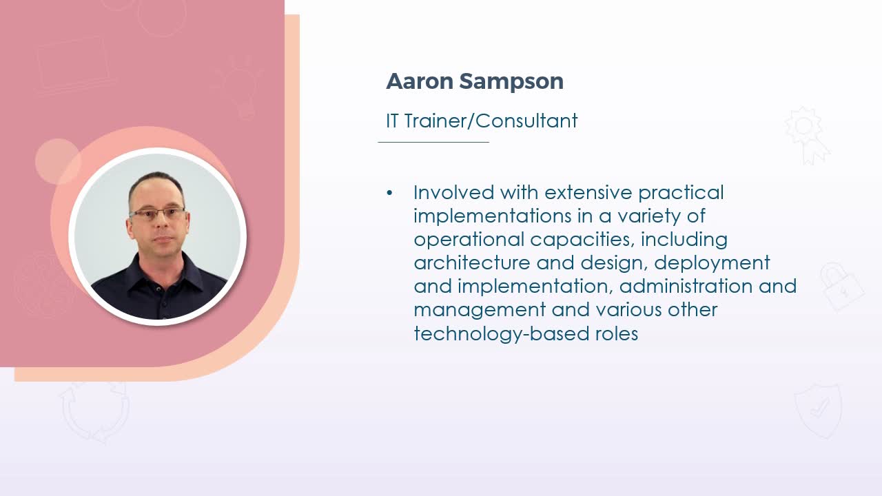 [Video description begins] Your host for this session is Aaron Sampson. He is an IT trainer and a consultant. [Video description ends]