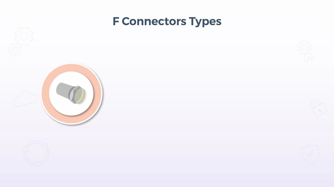 In this presentation, we'll provide an overview of some specific types of connectors that are used most often with specific devices or cable types, including F connectors, DB9, and Lightning. Now, beginning with the F connector, these are most commonly used for video distribution or when connecting to specific video devices, such as security cameras. The cable in use with an F connector is coaxial cable, which for those of you who don't have fiber into your home for Internet, is likely the cable that is providing your standard television service. The connector itself comes in a few different varieties, including twist-on, crimp-on and compression. The twist-on connectors tend to be used to connect the cable to a transmitting antenna, while crimp-on and or compression connectors would be used to connect the individual devices, such as cameras or other distribution devices, such as television receivers and even the TVs themselves.